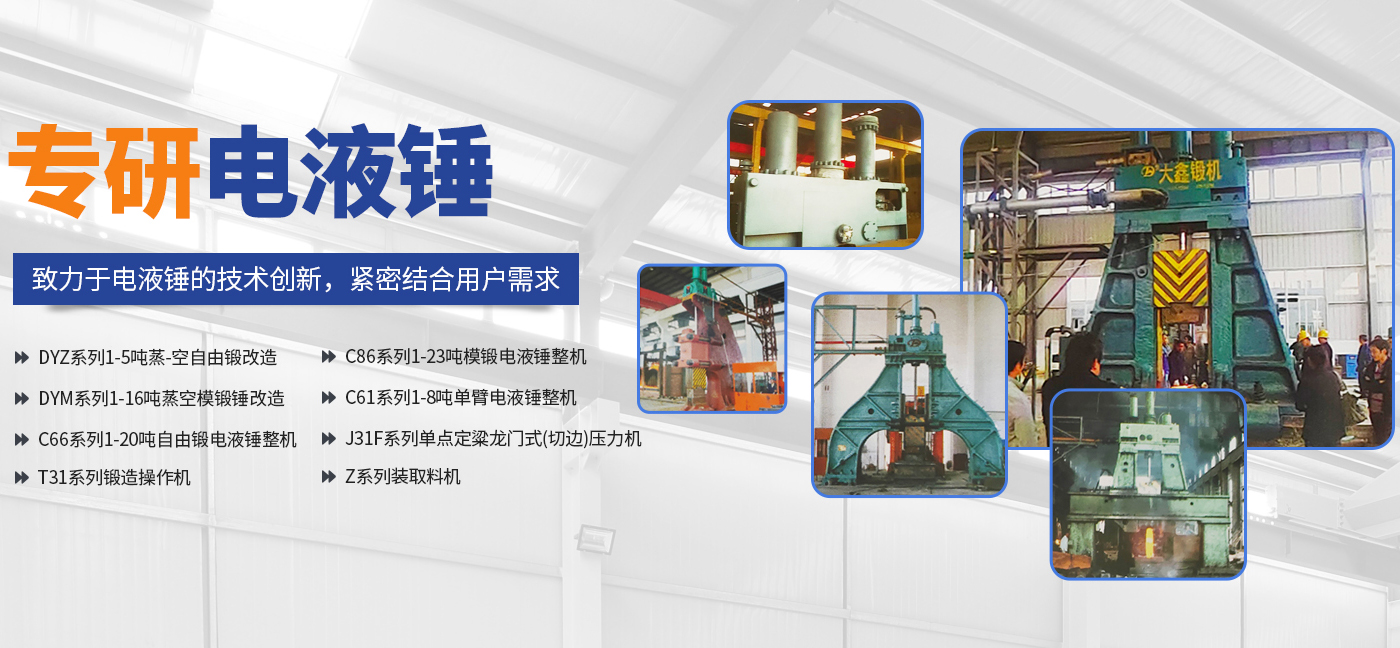主導產品系列電液錘及輔機;1~5噸蒸一空自由鍛改造;1~16噸蒸一空模鍛錘改造;1~20噸自由鍛電液錘整機;1~23噸模鍛電液錘整機;1~8噸單臂電液錘整機。